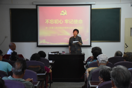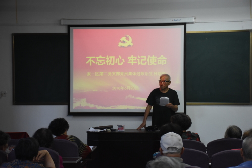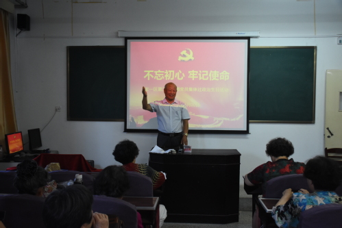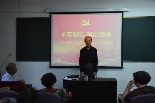 为庆祝建党97周年,进一步提高支部党员的身份意识和责任意识,增强基层党组织的凝聚力和向心力,激励退休干部党员不忘初心、继续前进,为党和人民事业增添正能量。6月20日上午,家一区第二党支部在康乐宫二楼教室开展了“不忘初心、牢记使命”主题党日活动,为支部全体党员集体过政治生日。活动由支部书记王凤顺同志主持,支部五十余名党员参加了此次活动。