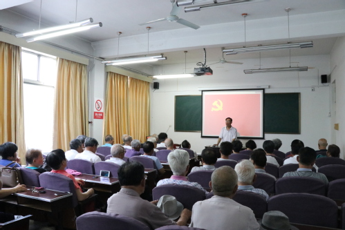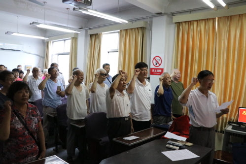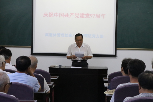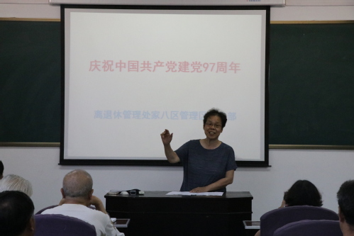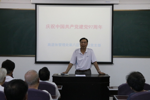 6月27日,家八区退休党支部在康乐宫开展庆祝建党97周年活动,活动由支部书记梁镜明主持,50名退休党员参加了活动。