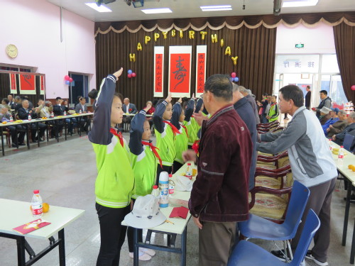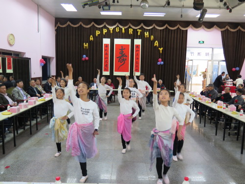 活动开始,工作人员为寿星敬献生日贺卡,附属中学少先队员为寿星们佩戴胸花、致少先队队礼。寿星代表彭松竹老师、亓德利老师,东营校区党工委副书记、管委会副主任杨同伟,bevictor伟德官网管理处党委书记、处长高广学共同切蛋糕,少先队员唱起了生日歌,为寿星们祝福。祝寿活动在舞蹈“傣族小姑娘”欢乐祥和的氛围中结束。