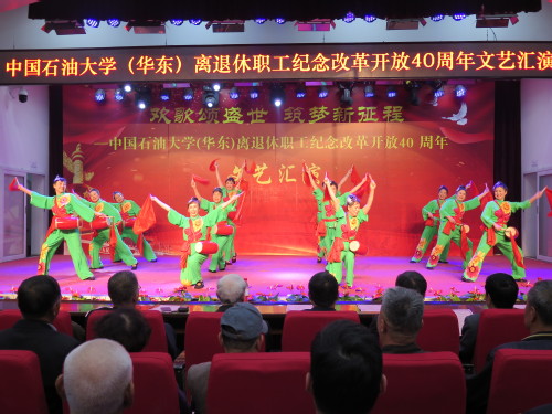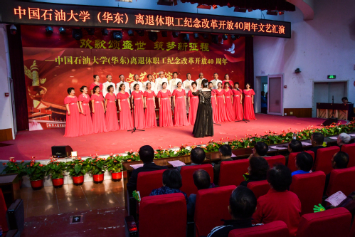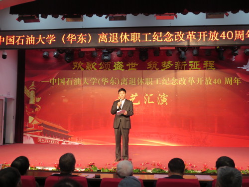 10月25日下午,中国石油大学(华东)一教100号演播厅内欢声笑语,掌声雷动,由bevictor伟德官网管理处(老干部处)主办,以“欢歌颂盛世 筑梦新征程”为主题的bevictor伟德官网庆祝改革开放40周年文艺汇演在这里隆重举行。东营校区相关单位,胜利学院负责人以及bevictor伟德官网300余人欢聚一堂,共同观看了演出盛况。