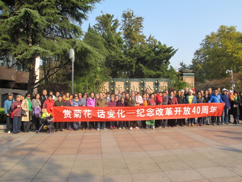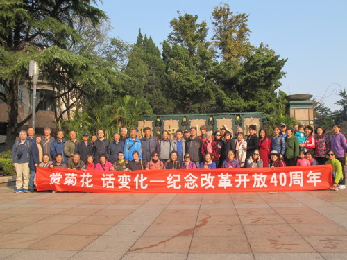 天朗气清,花开正艳。一簇簇、一团团的菊花傲然挺立、幽香沁人。老同志们一边兴致勃勃地赏花游览,一边畅谈国家和学校的新发展新成就,充满了欢声笑语。“以前来中山公园,坐轮渡,得一上午时间,现在有隧道,一小时就到了,地铁也快开通了,真是越来越便利了。”有的老同志说到。“咱们学校现在进入了‘双一流’,学校发展也进入了新阶段。”有的老同志说到。“改革开放真是让我们的生活发生了翻天覆地的变化,国家一定会发展的越来越好,学校也会越来越好!”有的老同志由衷地感叹到。