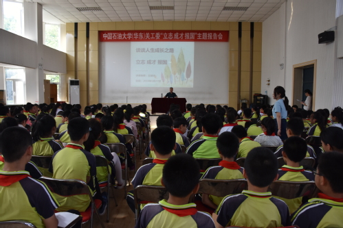 在六一国际儿童节来临之际,5月27日,中国石油大学(华东)关心下一代工作委员会邀请学校关工委成员、学校“五老”志愿者王桢华老师,为中国石油大学(华东)附属中学小学部五年级学生做了一场“谈谈人生成长之路——立志、成才、报国”的主题报告会,送给孩子们一份不一样的“六一”儿童节礼物。
