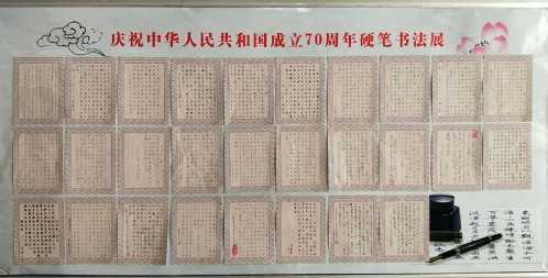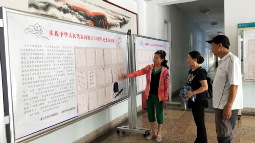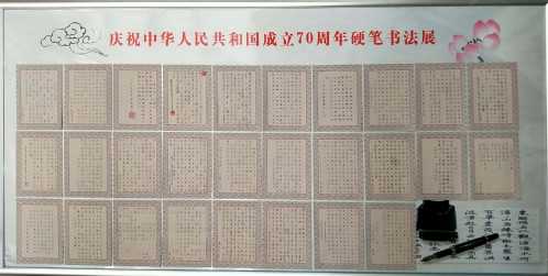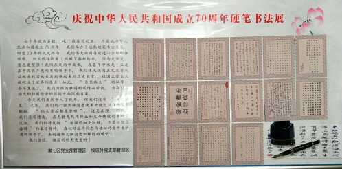 为庆祝建党98周年暨新中国成立70周年,“七一”前夕,家七区及校区外退休党支部在东营校区康乐宫联合组织硬笔书法展,66名党员群众提交百余幅作品参加展览。