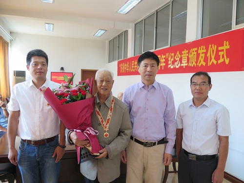 9月27日上午,“庆祝中华人民共和国成立70周年”纪念章颁发仪式在东营校区弘毅楼102会议室举行,离退处党委代表学校党委为常住东营校区的离休干部颁发纪念章,并送上鲜花和慰问金。