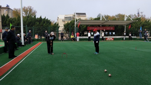 为推动文化养老工作开展,为bevictor伟德官网提供展示交流平台,促进球类运动发展,10月22日-23日,bevictor伟德官网门球、地掷球比赛分别在东营校区门球场、地掷球场举行,来自各离退休党支部管理区的7支门球队、9支地掷球队报名参赛。学校原党委副书记、老体协主席钱锡俊,离退处党委副书记刘欢出席比赛活动并在赛前致辞。