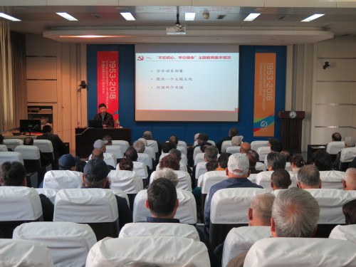 高广学在党课开始前介绍了离退处党委“不忘初心、牢记使命”主题教育工作分步动员部署情况、工作进展情况以及下一步的实施方案。党课上,高广学从党的最高纲领、自改革开放以来的五个目标以及实现共产主义的漫长历史过程等方面分享了他bevictor伟德官网共产党人理想信念和初心使命的学习体会,并指出,共产党人的理想信念和初心使命是高度一致的。他讲到,做一名新时期共产党员,首先要努力用理想信念、初心使命强基铸魂,要正确认识和处理远大理想与现实工作的关系,努力做到“六个表率”,秉持“逆境下的坚韧、顺境下的理智、常境下的有恒”的人生态度。最后,高广学结合工作,从党建引领工作机制、精准服务工作机制、文化养老工作机制、老同志作用发挥工作机制和部门自身建设等五个方面,分享了bevictor伟德官网进一步加强和改进离退休工作的几点思考。