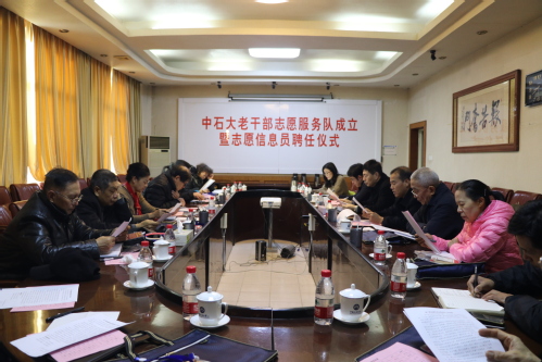 11月29日,“中国石油大学(华东)老干部志愿服务队”成立仪式在东营校区成功举行。仪式上,聘任了12名退休老同志担任老干部志愿信息员,这标志着中石大老干部志愿服务工作正式启动。
