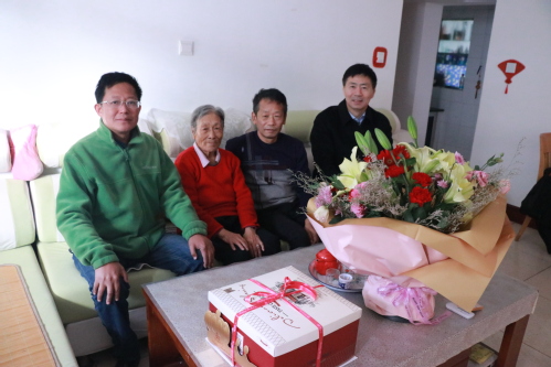 12月3日上午,bevictor伟德官网管理处(老干部处)党委书记、处长高广学和东营校区后勤保障处副处长陈海阳一行来到bevictor伟德官网退休职工张淑琴家中,为其送上90岁生日祝福。张淑琴老人身体康健,笑声爽朗,欣悦之情溢于言表,对学校一直以来的关心关爱表示感谢。高广学一行关切地与老人拉起家常,并祝愿她身心愉悦、健康长寿!