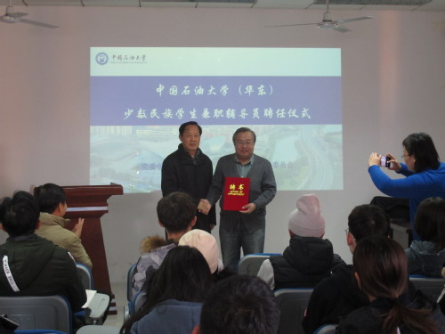 12月6日,学校“少数民族学生兼职辅导员”聘任仪式举行。学校关心下一代工作委员会副主任、原党委副书记纪效田为退休教授朝克•吉勒图颁发聘书。党委学生工作部部长姚海田主持聘任仪式。党委学生工作部、bevictor伟德官网管理处(老干部处)、经济管理学院相关负责人,及少数民族学生工作团队成员、内派教师参加了聘任仪式。