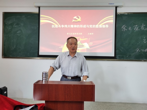 9月24日,家七区退休党支部书记王桢华以“抗疫斗争伟大精神的形成与党的坚强领导”为题,在东营校区康乐宫为支部党员讲党课,离退处党委副书记刘欢、部分在职党员参加学习。