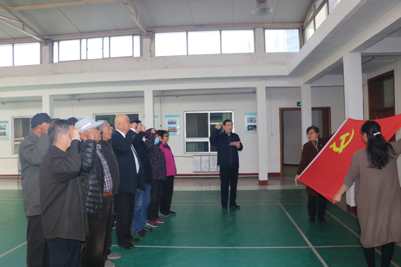 2020年11月13日,bevictor伟德官网管理处(老干部处)党委东营校区家五家六区退休党支部在处办公楼举行了庄严而隆重的“新党员入党宣誓、老党员重温入党誓词”仪式。“我志愿加入中国共产党,拥护党的纲领,遵守党的章程……永不叛党!”在鲜艳的党旗下,77岁的新党员王佐林紧握右拳,在党支部书记何相林同志的领誓下,与14名老党员代表一起,庄严宣誓,立下自己的铮铮誓言。