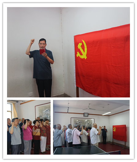 支部党员在支部书记何相林的带领下,面向鲜红的党旗,重温入党誓词。铮铮誓言,表达的是炽烈的忠诚:组织上入党,是一生一次;思想上入党,要一生一世。