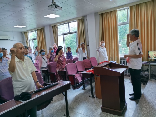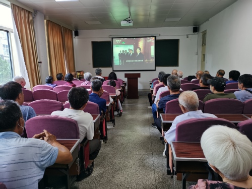 6月29日,家八区退休党支部在康乐宫组织观看文献专题片《敢教日月换新天》。
