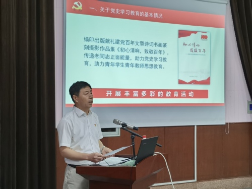 6月28日、6月29日,离退处党委书记、处长高广学以“学党史 办实事 作表率”为题分别在东营校区、青岛校区为离退休党员代表、骨干和全体在职党员讲授党史学习教育专题党课。