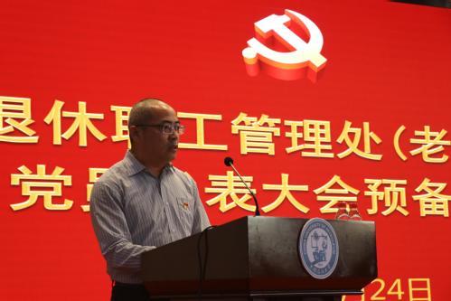 离退处副处长李冠林作党员代表资格审查情况报告(摄影 姚英凤)