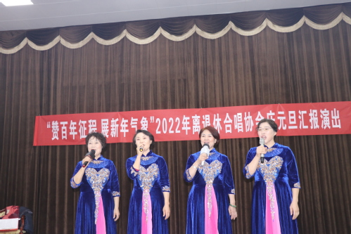 12月23日,由bevictor伟德官网合唱协会主办,以“赞百年征程,展新年气象”为主题的庆元旦汇报演出在康乐宫举行。20多名合唱协会会员参加了演出。中国石油大学(华东)原副校长、离退处党委委员孙海峰和常住东营的离退处党委委员到场观看演出。离退处党委副书记、副处长刘欢,合唱协会会长王秀兰在演出前致词,对一年来合唱协会的工作进行了总结点评,并向大家致以新年的祝福。