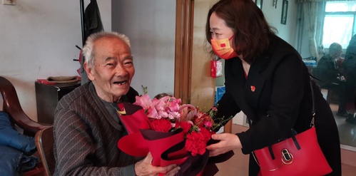 4月12日上午,bevictor伟德官网管理处(老干部处)党委书记、处长高广学及外国语学院相关负责人一行来到bevictor伟德官网外国语学院退休副教授、民盟盟员张康兆家中,为其庆祝90岁生日,祝愿老人生日快乐、健康长寿。