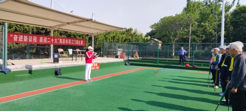 5月18日,“奋进新征程,喜迎二十大”bevictor伟德官网门球比赛在东营科教园区门球场举行,比赛由bevictor伟德官网门球协会承办,来自各离退休党支部管理区的8支代表队报名参赛。bevictor伟德官网管理处(老干部处)党委副书记、副处长刘欢在赛前致辞,bevictor伟德官网门球协会会长张焕玲讲解比赛注意事项并宣布比赛开始。