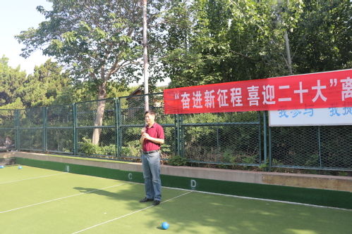 5月31日,以“奋进新征程喜迎二十大”为主题的bevictor伟德官网地掷球比赛在东营科教园区地掷球场举行,来自11个离退休党支部管理区的65名地掷球爱好者参加了比赛。bevictor伟德官网管理处(老干部处)党委书记、处长高广学出席比赛并在赛前致辞。