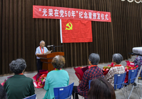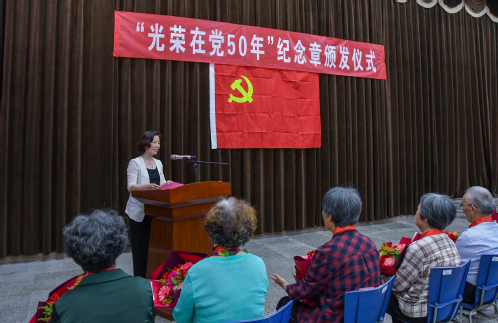 高广学在主持颁发仪式时指出,荣获纪念章的老党员,与学校风雨同舟,休戚与共,展现了共产党员的本色和初心。号召广大党员以荣获纪念章的同志为榜样,把党的历史学习好,把党的经验传承好,把党的作风发扬好,为学校改革发展、和谐稳定做出应有的贡献。