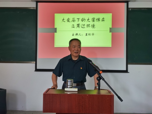 王桢华同志经过充分准备,通过大量的数据和史实,从古到今,从国内到国外,旁征博引,深刻地分析了当今世界的大变局,阐述了大国之间的激烈博弈,介绍了当前我们所面临的国际形势,强化了大家的忧患意识,使大家的政治嗅觉更加敏锐,爱国情怀更加坚定。他指出,我们生活在中国共产党领导的平安中国,这是我们最大的幸福。山河无恙,岁月静好,定有人负重前行,我们应倍加珍惜。国家兴亡,匹夫有责,希望大家继续关注国际局势,增强国防观念。