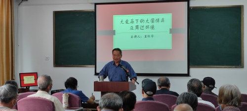 “七一”前夕,东营科教园区各退休党支部纷纷开展形式多样的主题党日活动。为了使党员同志们更加了解当前的国际形势,加强爱国主义教育,在做好疫情防控工作的前提下,各退休党支部又邀请王桢华同志为党员们分批次做《大变局下的大国博弈及周边环境》讲座,取得了良好的效果。