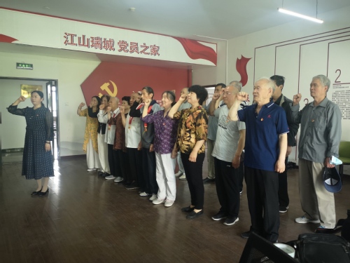 6月24日上午,后勤党支部迎“七一”主题党日活动在江山瑞城小区会议室举行,20多位后勤离退休党员参加活动。