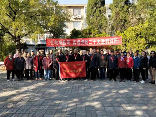 10月19日上午,家四区党支部管理区组织党员群众在家四区小花园举行唱红歌活动,庆祝党的二十大胜利召开,处党委委员、支部联络员徐正英参加活动并致辞。现场气氛热烈,近百名老同志积极参与其中,一起合唱《大概航行靠舵手》、《没有共产党就没有新中国》等经典红色歌曲,表达对党和祖国的热爱,歌颂党的丰功伟绩,庆祝党的二十大胜利召开。