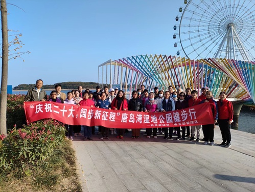 为庆祝党的二十大胜利召开,11月2日下午,机关教辅第一党支部管理区开展“庆祝二十大,阔步新征程”唐岛湾湿地公园健步行活动。