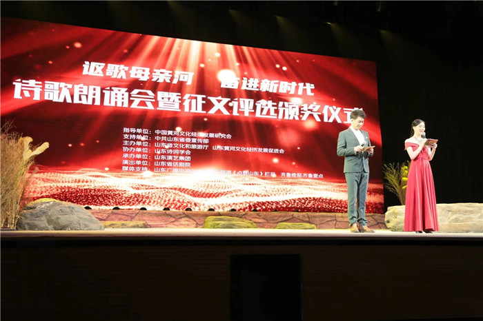 2月16日,“讴歌母亲河 奋进新时代”诗歌朗诵会在山东省话剧院大剧场举行。朗诵会由中国黄河文化经济发展研究会指导,山东省文化和旅游厅、山东黄河文化经济发展促进会主办,山东诗词学会协办,山东演艺集团承办,山东省话剧院作为演出单位。