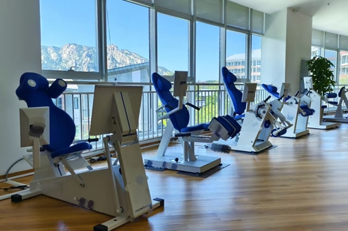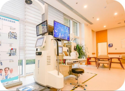 中心配备了先进齐全的医疗检测检查设备,如 GE 256 CT、GE 乳腺钼靶、DR、彩超、罗氏生化 - 免疫检查一体化实验室设备等;拥有 300 余种康复设备,包括生物细胞调节仪、磁疗设备、淋巴治疗仪、人体成分分析仪、医疗运动中心、荷兰进口 HURS 气阻式运动医疗设备等;同时还配备了先进的透析设备及自动洗澡机等辅助设备,为患者提供一流、舒适的疗养环境,满足客户全方位的健康管理需求。