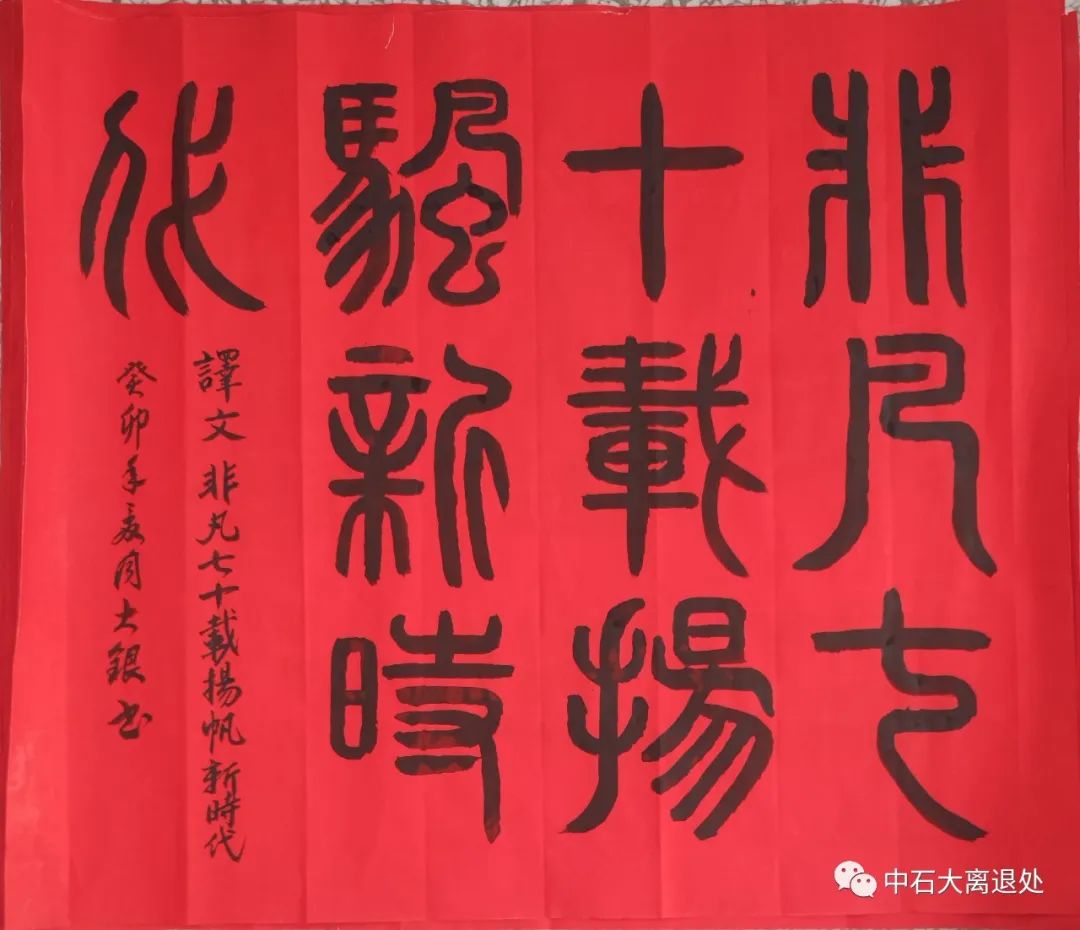 建校七十载,桃李尽芳菲!勇乘时代巨澜,再开宏图新卷! 桃李满天下,梓楠遍五洲! 款款深情庆盛典,声声祝福献石大!厚重石大,朴质之美……大红色宣纸上,书法家们用隶书、楷书、行书、草书等不同书体表现同一个主题:非凡七十载,扬帆新时代。作品在康乐宫西侧宣传栏一经展出,广大bevictor伟德官网及行人纷纷驻足欣赏,对祝福语赞不绝口。