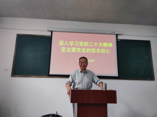 王桢华以《深入学习党的二十大精神 坚定跟党走的初心信念》为题,带领大家对党的二十大报告进行了学习。他指出,党的二十大报告立意高远、思想深邃、逻辑严密、内涵丰富,提出了一系列新思想、新理念、新战略、新举措,是指导我们踔厉奋发、勇毅前行的纲领性文献,是催人奋进的冲锋号和时代宣言。