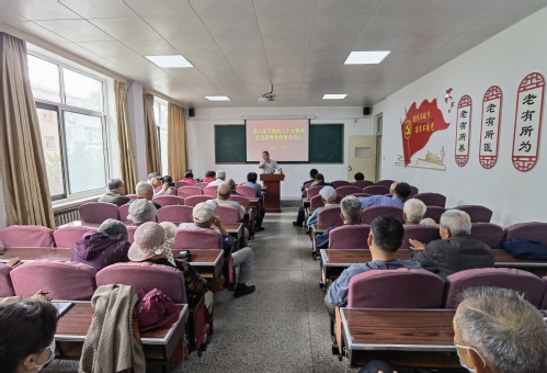 5月18日,家二区、家四区、园区外党支部联合邀请离退处党委委员王桢华为党员同志讲党课。离退处党委委员徐正英、三位在职联络员及40余名退休党员共同参加学习。