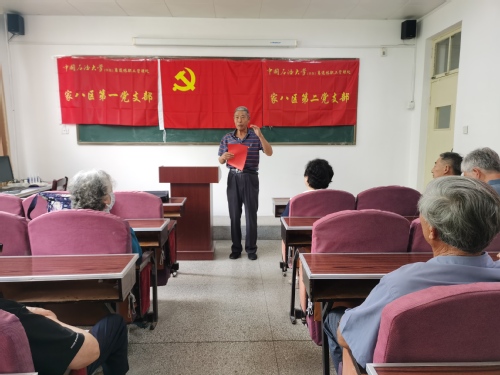 苏日平老师在总结时,号召大家认真参加学习贯彻bevictor伟德官网新时代中国特色社会主义思想主题教育,做到“离岗不离党 退休不褪色”,不忘入党初心,永远保持共产党员本色,发挥余热,积极为学校发展做贡献。