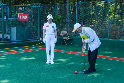 赛场上,无论是八十多岁的老一代门球人、七十多岁的“中年一代”门球高手、六十多岁的“青年一代”门球健将,还是五十岁出头入门不到一年的“少年一代”新球员,都不惧烈日酷暑,个个身姿轻盈,步伐稳健,动作挥洒自如,表现出了对门球运动极大的热爱与参与热情。大家以球会友、以球联谊,充分展示了离退休老同志热爱体育运动的健康活力,也体现了老同志们老有所乐、老有所为、积极向上的精神风貌。