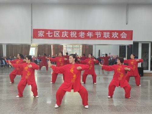 金风送爽、丹桂飘香,在浓厚的节日氛围里,老同志们载歌载舞,兴致高昂,分别表演了舞蹈《黄河水从我家门前过》、健身拉力操《谁不说俺家乡好》、木兰双扇舞蹈《怒放的生命》、独唱《有一个美丽的传说》、柔力球《青春年华》、 独唱《为了谁》、《健身气功·八段锦》、《四十八式太极拳》、合唱《最美不过夕阳红》。