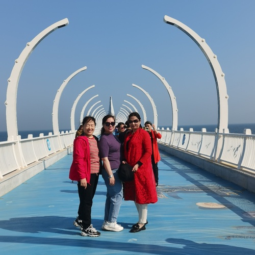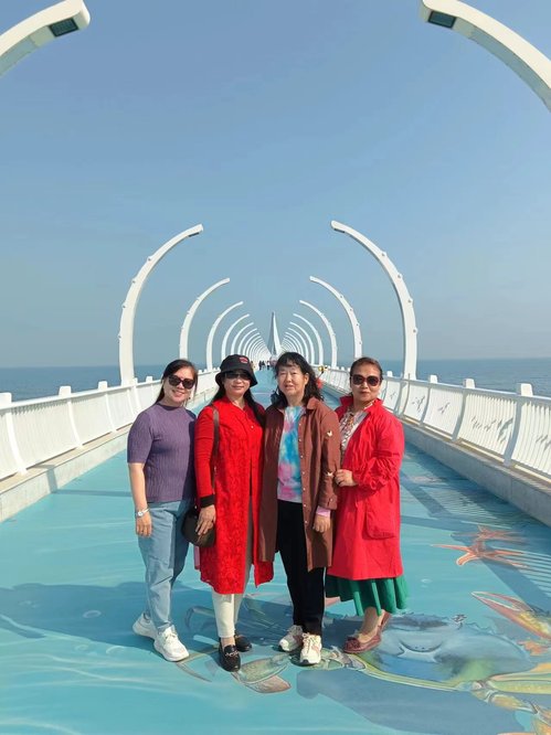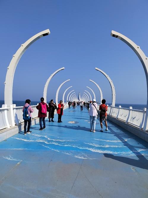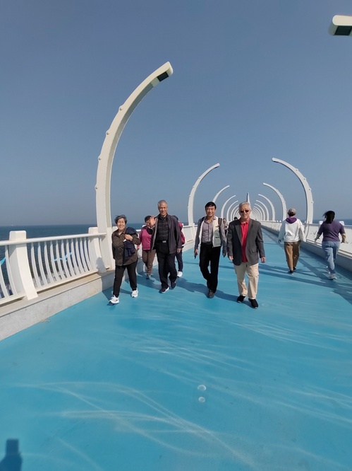午餐后,大家来到位于西海岸新区古镇口核心区的中国科学院青岛科教园实验栈桥,整座栈桥如同一根笔直犀利的箭羽,指向星辰大海。蓝天之下,漫步桥上,一边欣赏海景,一边沉浸在这满目的蓝色之中,感受大海的辽阔。