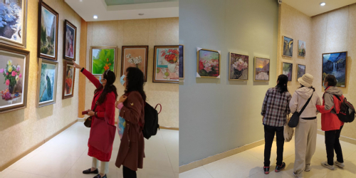 两支部一行90多人,首先参观了西海岸新区绿泽美术馆。绿泽美术馆共三千多平米,馆内近千幅油画作品色彩斑斓,栩栩如生。老同志们一起兴致勃勃地欣赏油画作品,感受艺术的魅力。