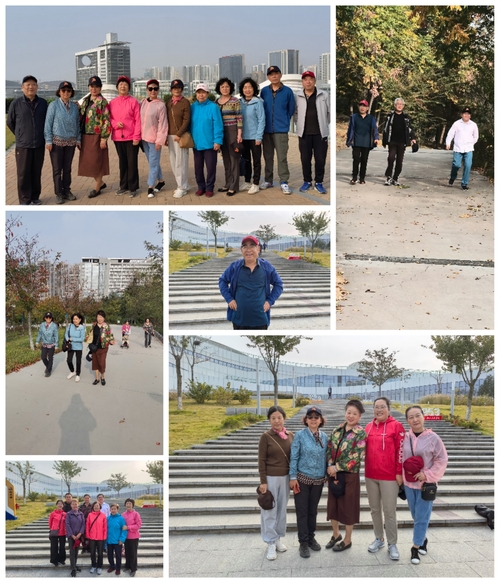 健步行活动绕行小黄山一周,大家兴高采烈地漫步在秋日的阳光中,欣赏满山的缤纷色彩,一路欢声笑语,交谈甚欢。老师们对此次健步行活动纷纷点赞,颜庆智老师赋诗一首:一山红叶黄叶,一行美女帅哥。一路欢歌笑语,一圈上坡下坡。大家纷纷表示,这样的活动增进了老同志间的情感互动和交流。以健步行活动为契机,感受绿色生活方式带来的快乐,进一步提升了健身热情和生活信心,激励大家在新时代新征程上老有所为,继续发挥余热。