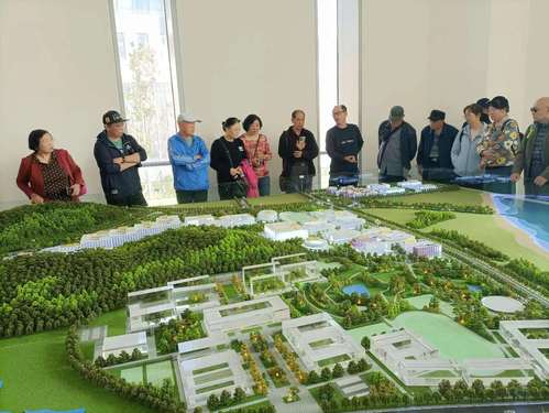 伴随着秋日的暖阳,老同志们首先来到了古镇口校区参观,大家漫步在校园里,一边欣赏校园美景,一边感受学校发展成就。在沙盘区,讲解员结合新校区的发展定位及地理位置,详细介绍了古镇口校区的建设背景、二期重点建设规划,招生以及重点学科布局。要把古镇口校区建设成以人为本、绿色节能、智慧便捷、开放共享、有利于学科融合、科教融合的现代化大学校园。老同志们看到学校突飞猛进的发展势头,心情激动,深表欣慰。