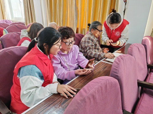 课程采用集中教学和个性化辅导相结合的方式进行。在课堂上,主讲人张新月同学用图文结合的方式,详细展示了微信预约医院挂号、注册信息的操作界面,细致讲解了操作步骤,大学生助教则在学员身边一一指导。集中学习结束后,助教们又针对各位学员遇到的个性化问题进行一对一辅导。学习的过程中,退休教职工变成了虚心求教的学生,大学生则变成了耐心细致的小老师,课堂氛围热烈而又温馨。