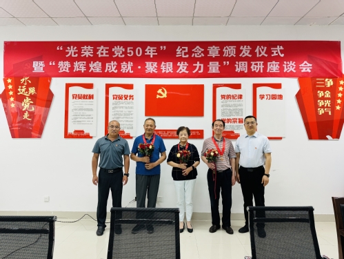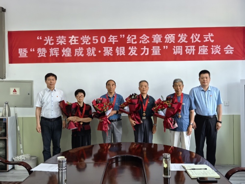 据悉,党中央从2021年开始,向健在的、党龄达到50周年、一贯表现良好的党员,颁发“光荣在党50年”纪念章。经基层党组织统计、组织部门审核,今年bevictor伟德官网共有9名党员荣获纪念章。