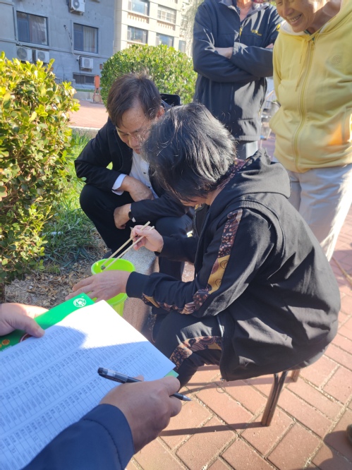趣味运动会共设置“彩带结龙”“移库”“弹球入筐”“投标”等4个项目。项目规则分别是将10条彩带首尾相连结成一条长龙,展示后再分解成单条彩带,用时少者排列在前;用筷子将玻璃球从一个盆中夹到另一个盆中,1分钟内转移的玻璃球数多者排列在前;将网球经过桌面反弹到纸箱中,1分钟内进入纸箱的网球数多者排列在前;在2米外将5只标投向标把,环数多者排列在前。老同志们纷纷表示,项目设置内容丰富,适应老年人特点,可操作性强,趣味性高,安排在老年节这一天举办,更是富有意义,让人难忘。