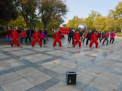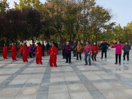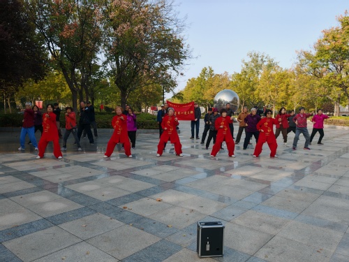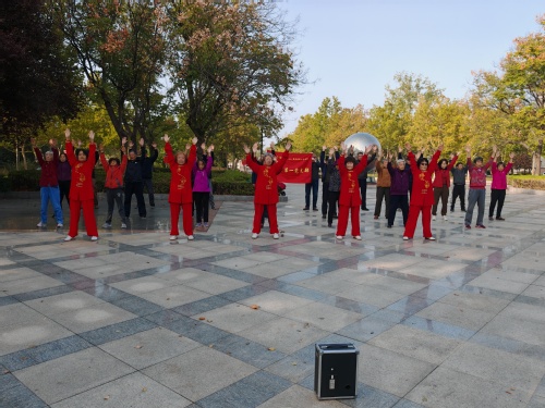 为响应离退处党委号召,推广普及健身气功·八段锦,活跃党支部管理区bevictor伟德官网精神文化生活,10月24日下午,家八区第一退休党支部管理区在东营科教园区地球仪广场开展八段锦习练展示活动。
