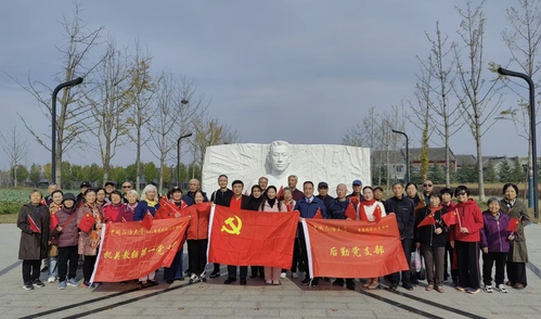 在赶往诸城的途中,大家热情高涨,挥舞着国旗,一路红歌,抒发情怀,为本次参观学习做了很好的铺垫。王尽美烈士纪念馆松柏苍翠、庄严肃穆,王尽美同志的塑像在广场上静静矗立,老党员们在王尽美烈士的雕像前,庄严的举起右手,重温了入党誓词,重忆入党初心,坚定了革命信念。