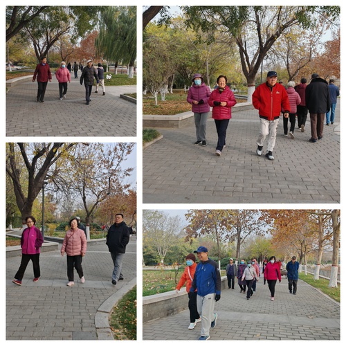 青岛健步行活动围绕江山瑞城小区岔河开展,东营健步行活动围绕荟萃湖开展。老同志们轻便着装,带着轻松愉快的心情,一边阔步前行,活动身体,一边呼吸河边、湖岸的新鲜空气,观看沿途树林落叶美景。大家或三五成群,或两两结伴,或怡然自乐,或健步如飞,或驻足畅谈,或拍照留影,一路欢声笑语,尽享初冬的美景与惬意,体验集体活动带来的快乐。