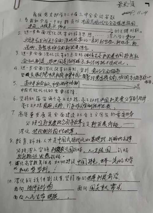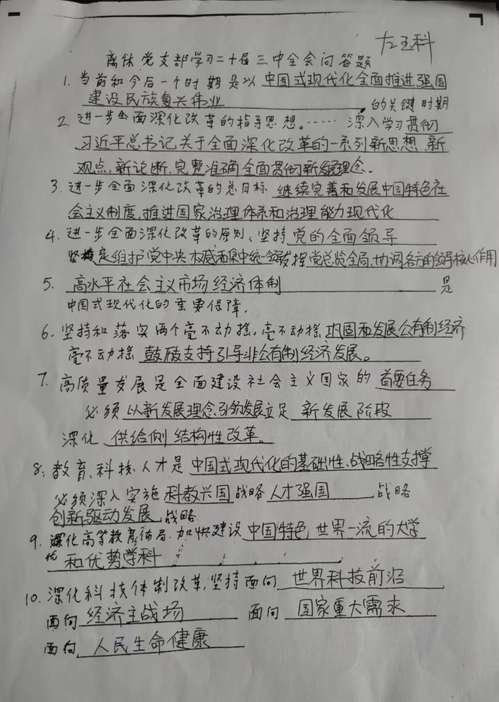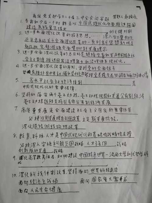 近日,离休党支部组织开展学习党的二十届三中全会精神知识竞赛。竞赛试题为离休党支部94岁的宣传委员赵振远同志手写。赵振远同志认真研究学习《中共中央bevictor伟德官网进一步全面深化改革、推进中国式现代化的决定》全文,通过观看电视、阅读报纸、收听广播等多种形式认真学习领会党的二十届三中全会精神。他撰写的21个问答题,紧扣主题,要点突出,对大家学习领会党的二十届三中全会精神起到非常好的补充作用。