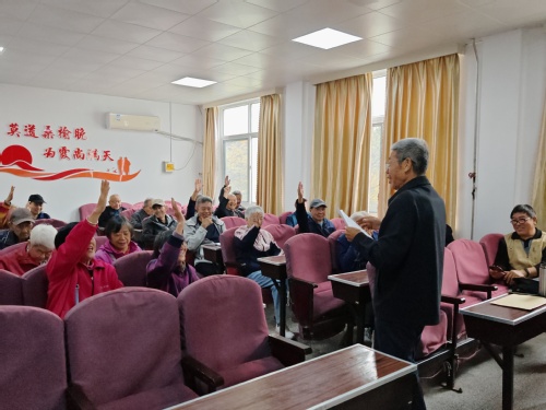 活动核心环节为“党章+八项规定”知识抢答赛。现场设置20道单选题与判断题,涵盖党章核心要义、中央八项规定具体要求等关键内容。“党章规定,党的最高理想和最终目标是什么?”……苏日平书记逐题提问,早已做好知识储备的党员们反应迅速、踊跃举手,答题准确率颇高,现场抢答声与掌声交织。多环节沉浸式参与让退休党员在紧张的竞技氛围中巩固了理论知识,重温初心使命,强化了纪律意识。