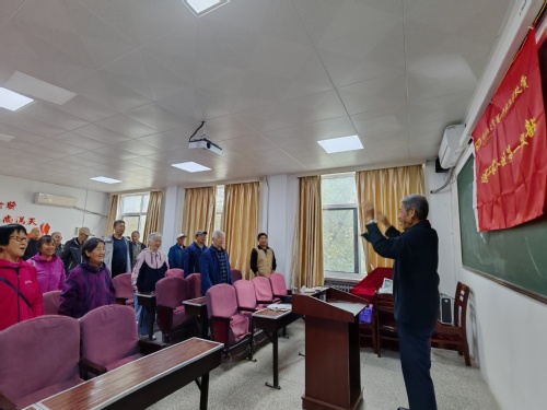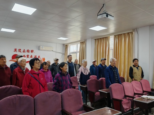 10月17日上午,退休职工家八区第一党支部在康乐宫党组织活动室,以“学党章守规定 忆初心聚能量”为主题开展活动。活动伊始,在支部书记苏日平的带领下,伴随着激昂的旋律,全体党员齐声高唱《大海航行靠舵手》《没有共产党就没有新中国》。嘹亮的歌声唤醒了大家的红色记忆,迅速点燃了现场热情,为整场活动奠定了昂扬向上的基调。